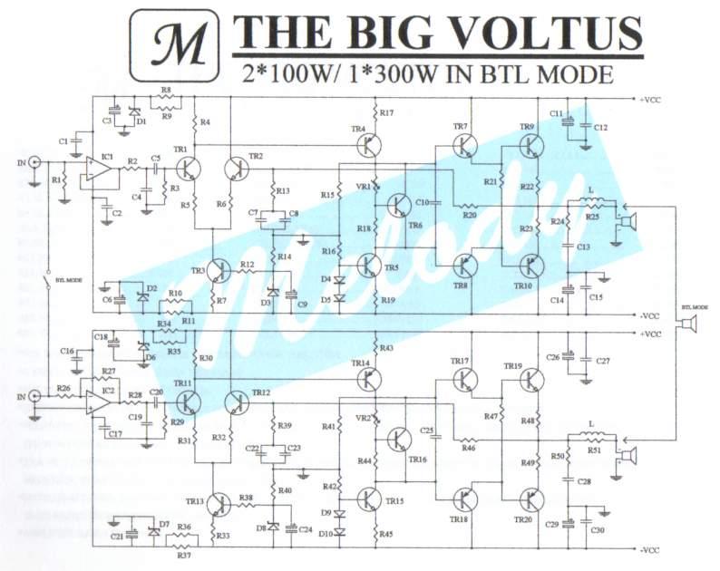 Keresek Melody -féle 100-200W-os erősítő kapcsolást (8R) mély ládához. Erre ott lenne a The Big Voltus, csak ezzel meg az a gond hogy +-50V-ról döcög, nekem pedig +-37V áll rendelkezésemre. (Mondjuk a vég tranyók tokozása sem éppen a legjobb, de arra megoldást találni már nem nagy gond.) Legjobban valami Mosfet-es kapcsolásnak örülnék.
