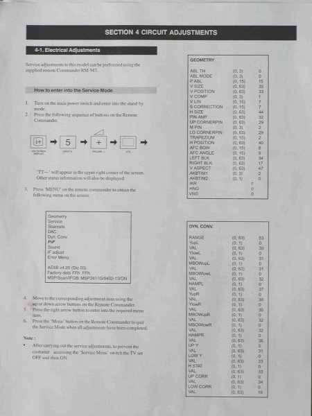Volna egy kérdésem hozzátok. Sikerult felélesztenem egy Sony tévét (már korábban írtam rola KV-29cs60k), és bele kellene lépnem a service menu-be, beállítani ezt-azt, mivel a kép geometriája nem éppen megfelelo(mellékelt kép). Találtam hozzá egy doksit, hogy lehet belelépni- mit kell megnyomni a távirányítón, de nem sikerul sehogy sem. Valaki el tudná mondani, hogy kell idozíteni a nyomásokat, vagy mi kell még, hogy bele tudjak jutni? Koszi a segítséget elore is.