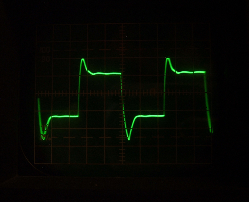 Megmondom őszintén nem ilyen jelalakokra számítottam. A 6C33C SE-nél a meghajtó 6E5P után kívánni sem lehetne szebb négyszögjeleket a teljes hangfrekis tartományban. Mindamellett még sohasem volt dolgom teljesen DC csatolt erősítővel. Itt minden mindennel összefügg és együtt mozog, bárhol is nyúlok bele. (Könnyebb dolgom lenne, ha NAGYEVIZ még látogatná az oldalt, állítása szerint Ő többet is összerakott ebből a kapcsolásból...)