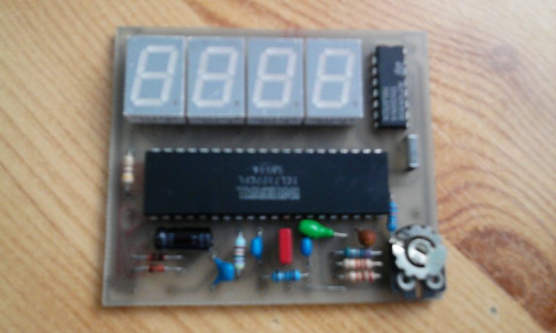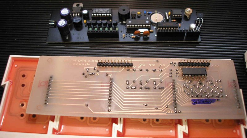 Csak ízelítőnek néhány gondolatban és képek a készülő nagy ledkijelzős óráról. A kontroller PIC16F628(A). A programot Hp41C írta, a nyákterveket, kapcsolástechnikát Sooty készítette. Mule2 néven egy többfunkciós hatcsöves nixie óra készül, ebből jött aztán a gondolat, mi lenne, ha ezt hétszegmenses ledkijelzőkkel is elkészítenénk. Már működik a próbaverzió, nem tartalmaz egyetlen kezelőgombot sem. Néhány alapfunkció az óra működéséről.. RTC, teljeskörű infra távvezérlés RC5 protokollal, DCF77 szinkron. Hangjelzés egész órakor, egy, vagy ahány óra van, és idő intevallum tól-ig a hangjelzés engedélyezésére. Nappali/éjszakai fényerő 8/8 fokozatban. Nyolc beállítható ébresztési időpont, DCF szinkronok száma, évszázad kijelzése, stb. Minden beállított adatot az RTC-ben tárol a program, amit egy 3V-os gombelem táplál, ha éppen nincs áram alatt, ezért nem felejti el az időt és a beállított adatokat sem. A vezérlő panelen a PIC, az RTC, és egy BCD CD4028 IC van, ez kapcsolgatja multiplexben a kijelző modulok mind a hat katódját egy-egy BC337 tranzisztoron. A panel tartalmaz egy SN74141 nixie meghajtót is , de erre itt most nincs szükség, csak a D,C,B,A bemeneteit vezettem ki a tápfeszekkel együtt egy külön kis panelen helyet foglaló hétszegmens dekódoló, (CD4543), és egy szegmensmeghajtó ULN2003 tranzisztormező alkalmazásával.A program és a hardver finomításai még folynak...