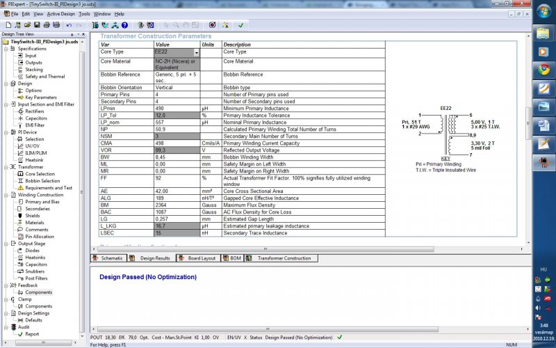 A Power Integrations programját használtam méretezéshez, és ezt dobta a transzformátor adatainak. Szerintetek ez jó (sekunder: 5V 3A és 3.3V 1A)?