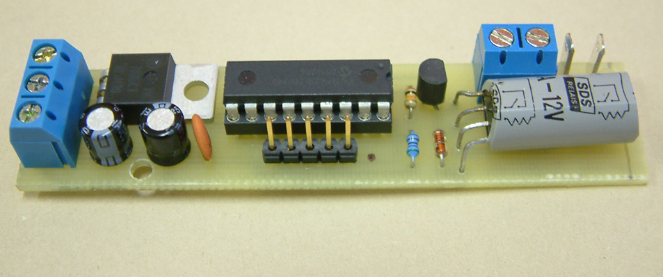 Nagyon szép design! Itt az én heti PICinyke "alkotásom". A mellékhelyiség szelőztetését vezérli egy mozgásérzékelővel összekötve, attól függően mennyi időt tölt el valaki a helyiségben. A lelke egy16F628-as mc. Egy kisebb lábszámú is megfelelt volna (pl:12F629), ám ez egy "fióksöprögető " project volt, úgy hogy azt használtam amit találtam. Például a benne lévő relét évekkel ezelőtt (de lehet, hogy évtizede) bányásztam ki, már meg nem mondom miből. A program szinte nyúlfarknyi, úgy hogy memória gond sem lépett fel...