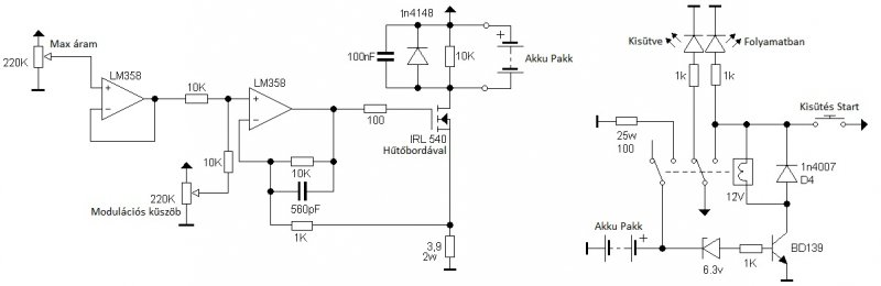 Van 2db NiMH aksim ezeket szeretném tölteni, az egyik 8,4V-os 7 cellás 1100mAh-s, a másik 9,6V 8cella 2000mAh. Megnéztem ezt a cikket:Bővebben: Link A kapcsolási rajzon kicsit egyszerűsítettem, megtudnátok nézni h jó-e? Az áramgenerátoros résznél az aksi bekötésben nem vagyok biztos. A kisütő 6,3V-os zenerje a 8,4V-os aksikhoz jó? 9,6V-os aksihoz 7,2V-os zener kell?