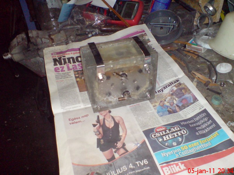 Tavasszal bele raktam a traktorba. A cella 2 saválló spirálból állt. Plexitre tekerve.A 4 cellát be raktam a fülkébe a lábaim mellé. A plexit a melegtől meghajlott, a spirál leugrott a tekercs testről és az elektrolit felett a gáz térben összeért!!!