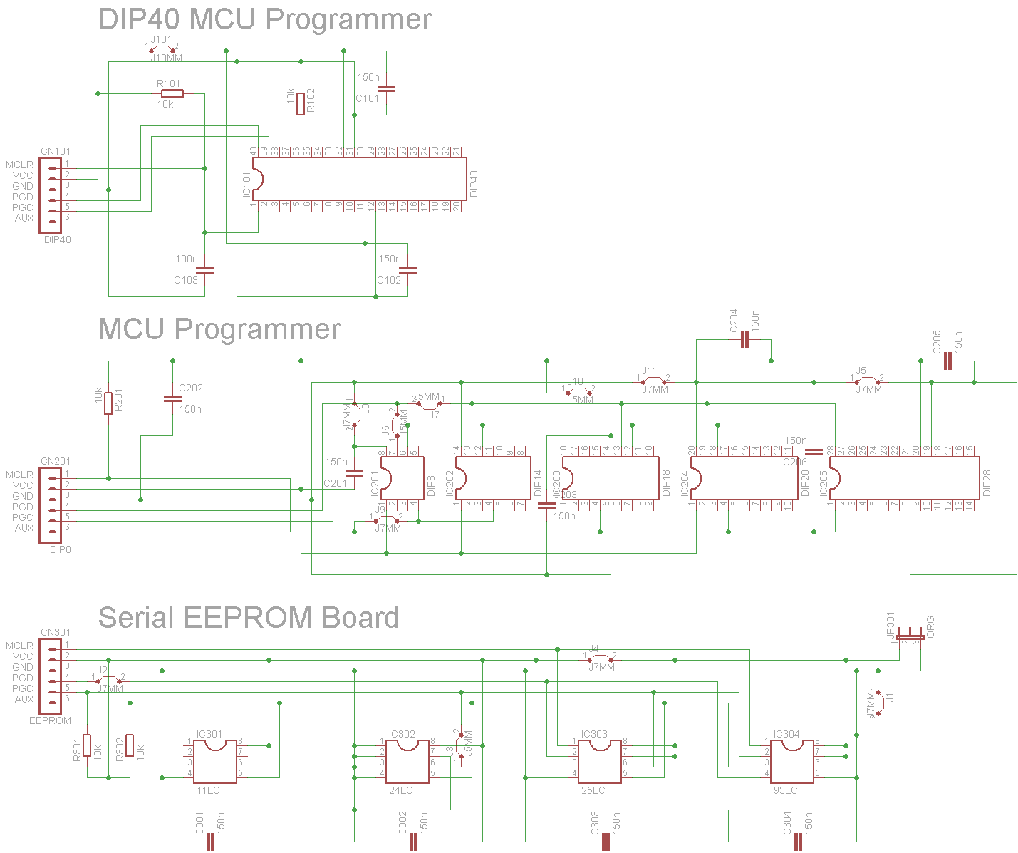 Csak Ugy meg kerdezem, hogy tudod-e a 8, 14, es a 20 labas PIC-ek tap, MCLR, es programozo labai ugyanarra a pontra vannak kihozva. Tehat eleg egy 20 labas DIP foglalat, es abban tudod programoaxni mindet. A 28 es a 40 labas hasonloan.