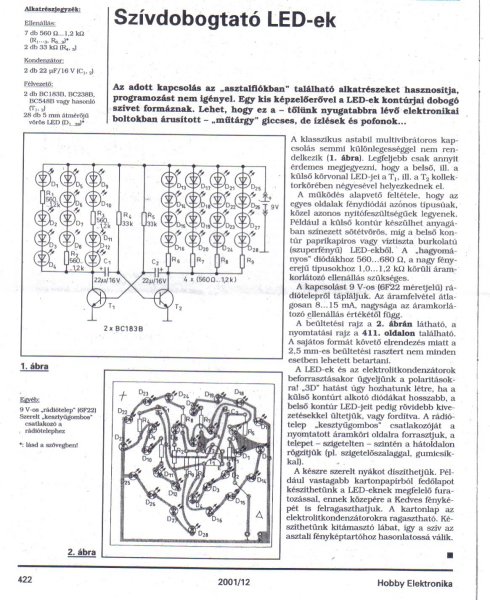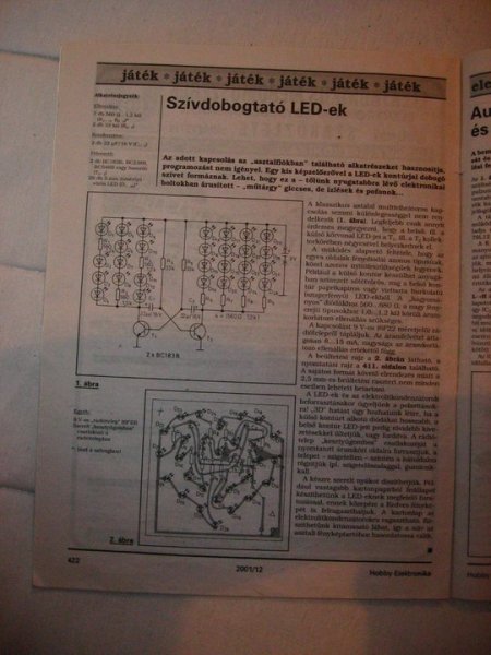Elkészült a szív, ( Valentin napra már oda is adtam az asszonynak ) nagyon szuperül működik, annyi hiba van a dologban, hogy a PNP tranzisztor nem zár le teljesen, amikor az 555 kimenete alacsony szinten van, így a belső szív ledjei halványan világítanak, de viszont sötétben nézve így még sokkal frankóbb a látvány Kapcsolási rajz, nyákterv (csak vezérlőpanel, a ledek külön vannak az előlapon) és néhány fotó a mellékletben