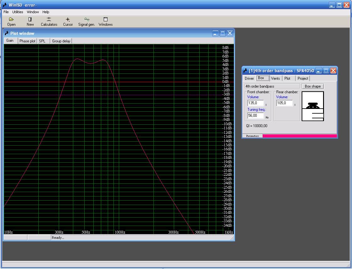40Hz-es alsó határtól sokkal kevesebbet BP-vel sem érdemes hajszolni szerintem, ha a terhelhetőség/érzékenység is fontos, és az is probléma, hogy a hangolás eléggé mérésigényes feladat lesz majd. Itt közel sem elég annyi, hogy megépíted, amit a programban látsz.