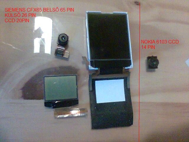 Van egy Siemens CFX65-ös telefonból kirobbantott belső, egy külsö LCD-m szintén ebböl a tipusból egy CCD-m + egy Nokia 6103-asba való CCD-m. Sokat keresgéltem és semmit nem találtam róluk. Az LCD-ket mindenképpen szeretném működésre bírni. A belső 65, a külső pedig 26 érintkezős. Sajnos a kép finoman szólva nem a legjobb (VGA). A programozással megbirkózom valahogy csak az adatlapjára lenne szükségem. Nagy vonalakban ehhez kérnék segítséget