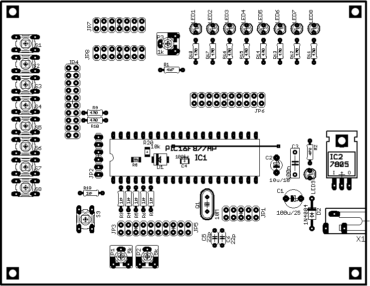 Ennek a kártyának nézd meg a leírását / kapcsolási rajzát, hátha ad valami ötletet! Persze, érdemes az eredeti PICDEM 2 plus kártya dokumentációját is megnézni, s esetleg a saját kártyádat vele kompatibissé tervezni (a beszerezhető mintaprogramok használhatósága végett). A kínai kártyához egyébként készülget a tananyag.