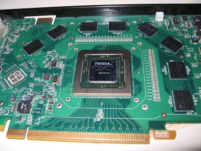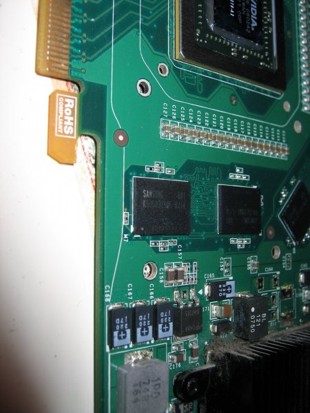 Alábiakban egy Inno3D Geforce 8800GT videokártya látható hűtőborda nélkül, közelebbről pedig annak egy 64MB-os memória IC-je. (Asszem DDR3) A cuccnak egy szépséghibája van: az említett IC hibás. Karakteres üzemmódban szép csíkos, grafikus üzemmódban szemcsés, a Vindóz meg be se indul vele csak ha csökkentett módban letiltom. (Így sajnos egy flash animációt nem lehet megnézni vele) A hibát amúgy az okozta hogy huzamosabb ideig használtam 80 fokon, lényegtelen. Viszont láttam egy-két illető hírdetését, akik VGA-k és hasonlóan komplex cuccok javításával foglalkoznak. (A kérdésem elsősorban feléjük irányul)