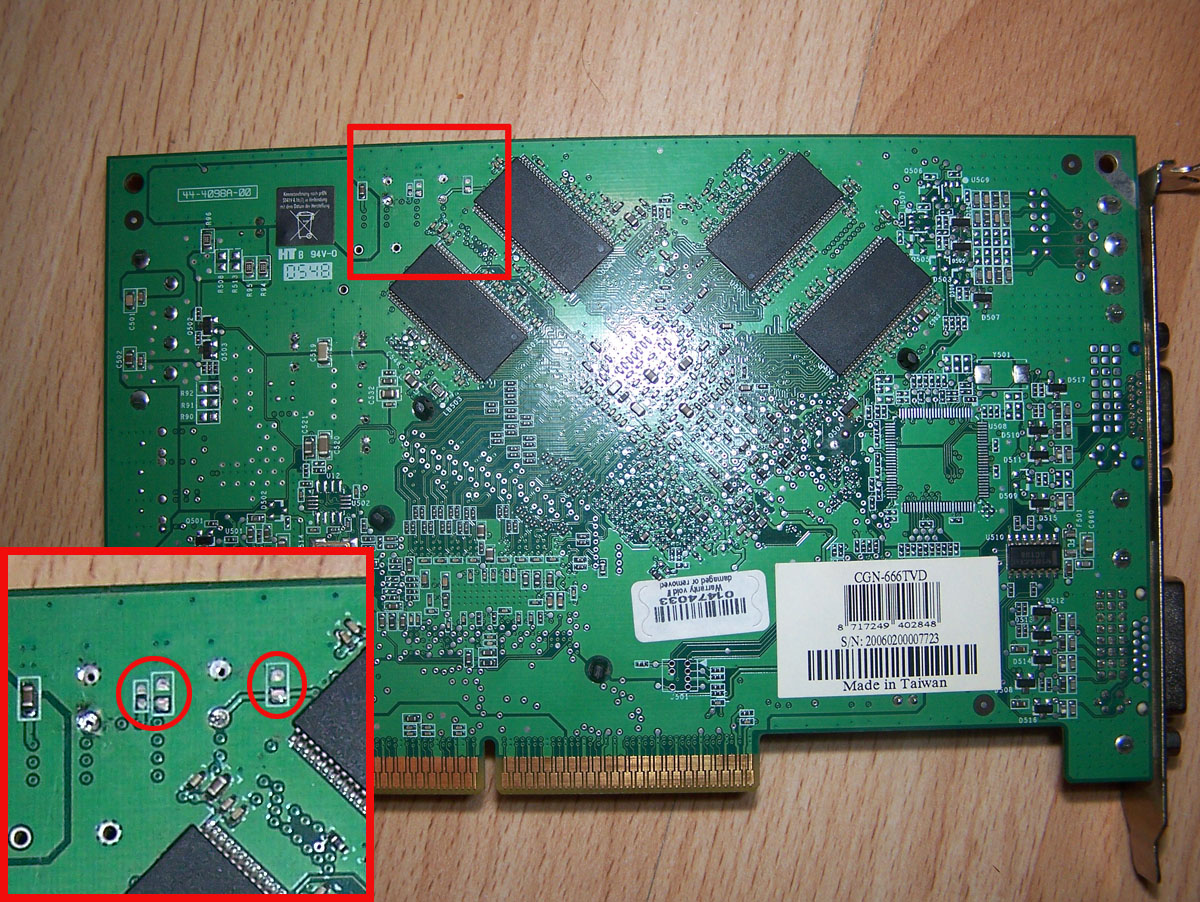Van egy Club3D GeForce 6600 kártyám, amin 2 évvel ezelőtt kondikat szerettem volna cserélni, de 3 SMD alkatrész letört róla. Nem tudom, hogy ezek ellenállások voltak-e, vagy valami más. A kártya azóta itt pihen a fiókomban, de nem dobtam ki, hátha valamikor kiderül, mik törtek le róla.