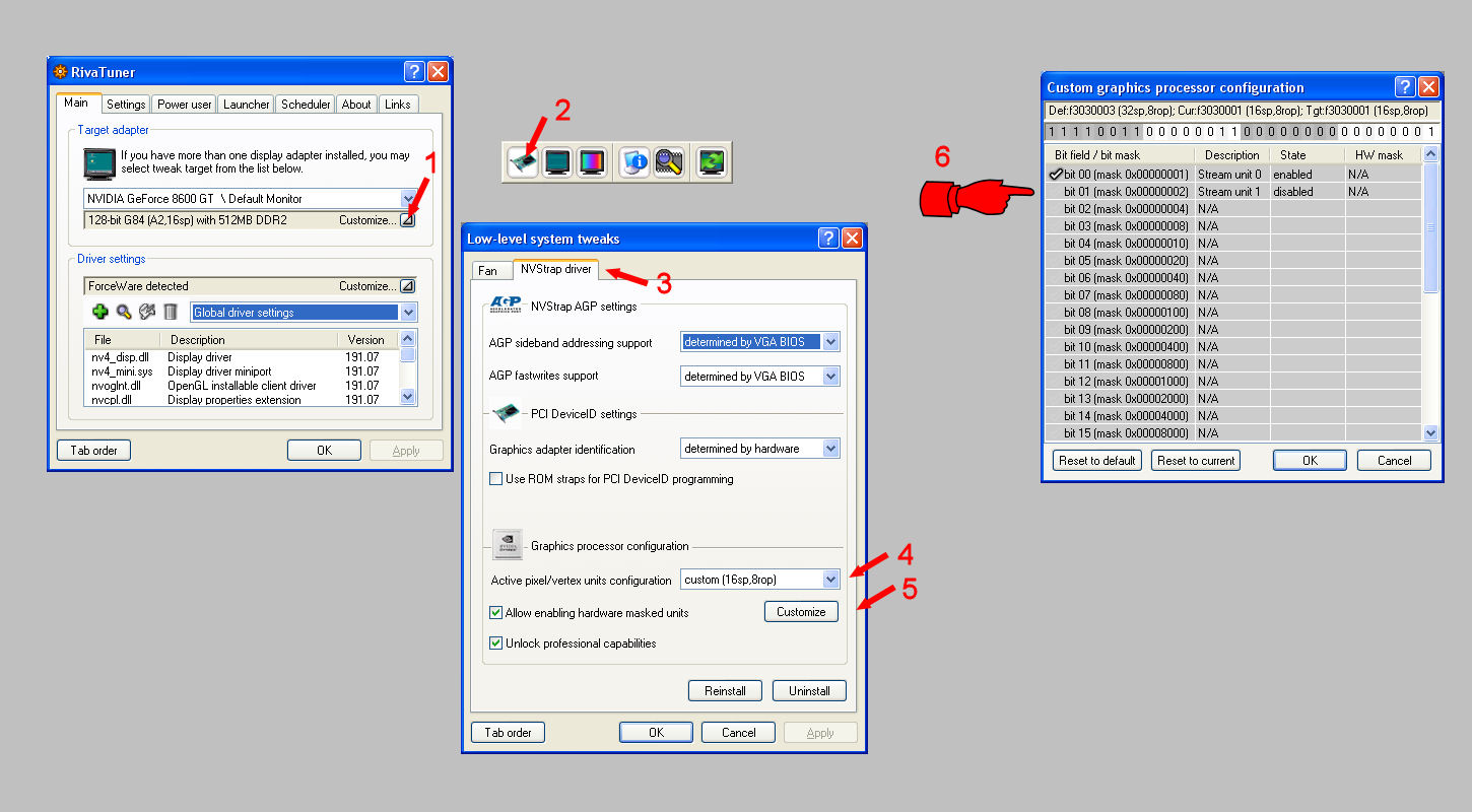 A 6. lépésnél, vagy a baloldali pipát veszi ki az ember, vagy a fenti bitsoron billenti át a letiltandó egységnek megfelelő egyest nullára.
