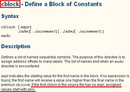 CBLOCK után nincs cím írva. Így a fordító alapértelmezésként valószínűleg a 0x00 címhez rendeli a t1 változót, ami nem egészséges, mert ott még a nem-szabadon-felhasználható, azaz nem a GPR memóriarész található, ahova te éppen szabadon tehetnél bármilyen adatot. Így szokás megadni tehát: