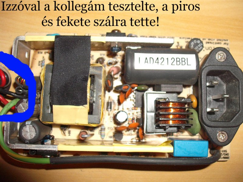 1., a tápegység(amit vmelyik képen kékkel jelöltél)jó, mert 3 óra után meguntad, hogy nem változik semmi.(60 W izzó)