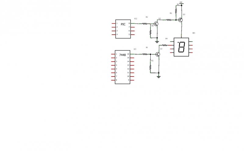 Tényleg a legegyszerűbb kicserélni 7448ra, ezután már csak egy uln2803 kell, pont jó, mert az eredeti közös anódos megoldás miatt a PIC magas szinteket ad az egyes kijelzők közös anódjára, szóval ha közös katódos van és 7448 akkor az uln2803 kollektoraira mennek a katódok, a bemeneteire meg a PIC kimenetei.