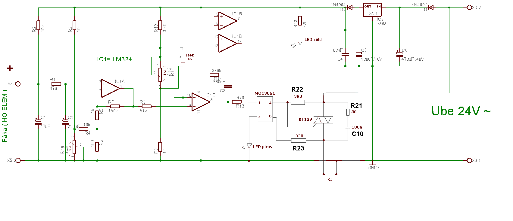 köszi lekötöttem mindent és tényleg 24v.Viszont az a helyzet, hogy a páka jó gyorsan felmelegszik a kívánt hőmérsékletre, ám ahelyett hogy lekapcsolna elkezd villogni a fűtést jelző led ,a trafó nyekereg és nem kapcsol le teljesen a fűtés ,hanem ugrál a feszültség a kimeneten. Mi lehet? Az nem lehet gond, hogy ezeket használtam?: MOC 3020 (MOC061 helyett) BT 137 (BT139 helyett)