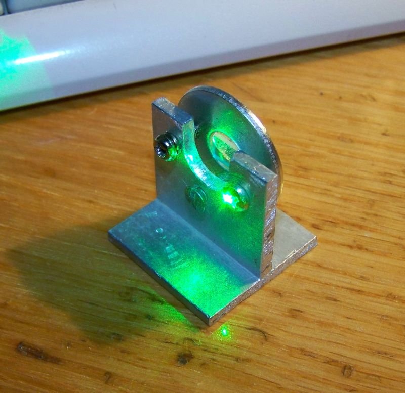Én úgy csináltam, hogy mind a két lézeremnek és a dichro-nak + a motoroknak úgy csináltattam alu tartót, hogy a nyaláb középpontja 20mm-re legyen attól a síktól, amire felfogatom. Figyelembe vettem, hogy a zöld modul átmérője nagyobb mint a pirosé, így ezt is belekalkuláltam a tervezésbe. A dicro-t meg egyszerűen úgy oldottam meg, hogy egy téglatestet csináltattam tartónak 18mm magas, van bene egy mm mély nút, ami olyan széles mint a dicro, ide van beletéve és odaragasztva, de csak oda pöttyintve teljesen fix-re. És a 45 fokot meg úgy állítom be, hogy a tartó, csak 1 ponton van rögzítve, így magát a tartóját állítom be 45 fokos szögbe és meghúztam erősen. 1 év elteltével sem kellett még utánállítanom.