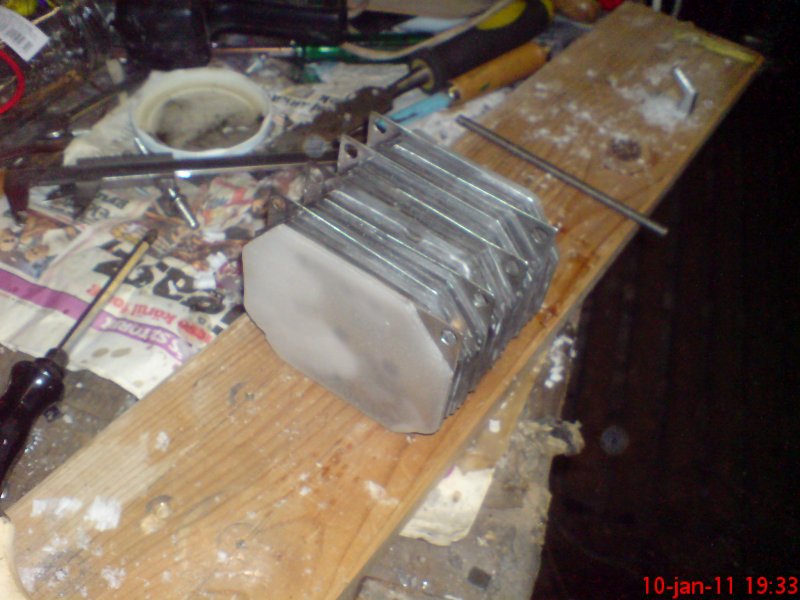 További képek nem fért rá az egész kis infó a lemezeket összeragasztottam kis kerek kb 4mm-es és 3mm széles műanyag dugókkal az egészet viaszba öntöttem majd a felesleget leszedtem beraktam az elektromos csatlakozókat és az egészet műgyantával körbe öntöttem! Azután befúrtam a csatlakozók helyét és az egészet "megfőztem" addig melegítettem fazékban míg a viasz megolvadt és kifolyt a lyukakon.
