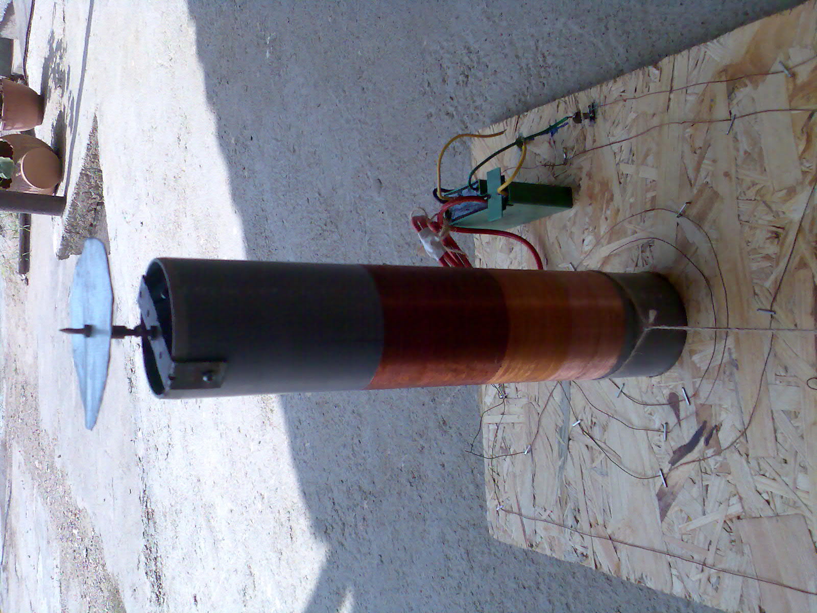 Ha később komoly teszteléseket akarsz véghezvinni, ezt a szekundert teljesen át kell alakítanod, de legjobb, ha egy újat csinálsz (előtte nitrolakkal le kell lakkozni a pvc csövet) egyfajta huzalból.Ezt minden tisztelt kísérletezőnek mondom most, hogy nem a szépség miatt kell igényesen kivitelezni az egész tesla tekercset, hanem hogy ne legyenek csúcsok, zavaró tényezők, és égések. A helyes működéshez elengedhetetlen az igényesség! Én ezt azért mondom, mert tapasztaltam a "mindegy hogy hogy néz ki csak legyen gyorsan kész" munka hátrányait.