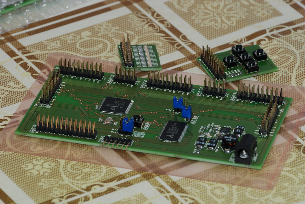 A valamivel kisebb panel a próbapanel. Mindkettő szíve egy PIC24HJ256GP210A.