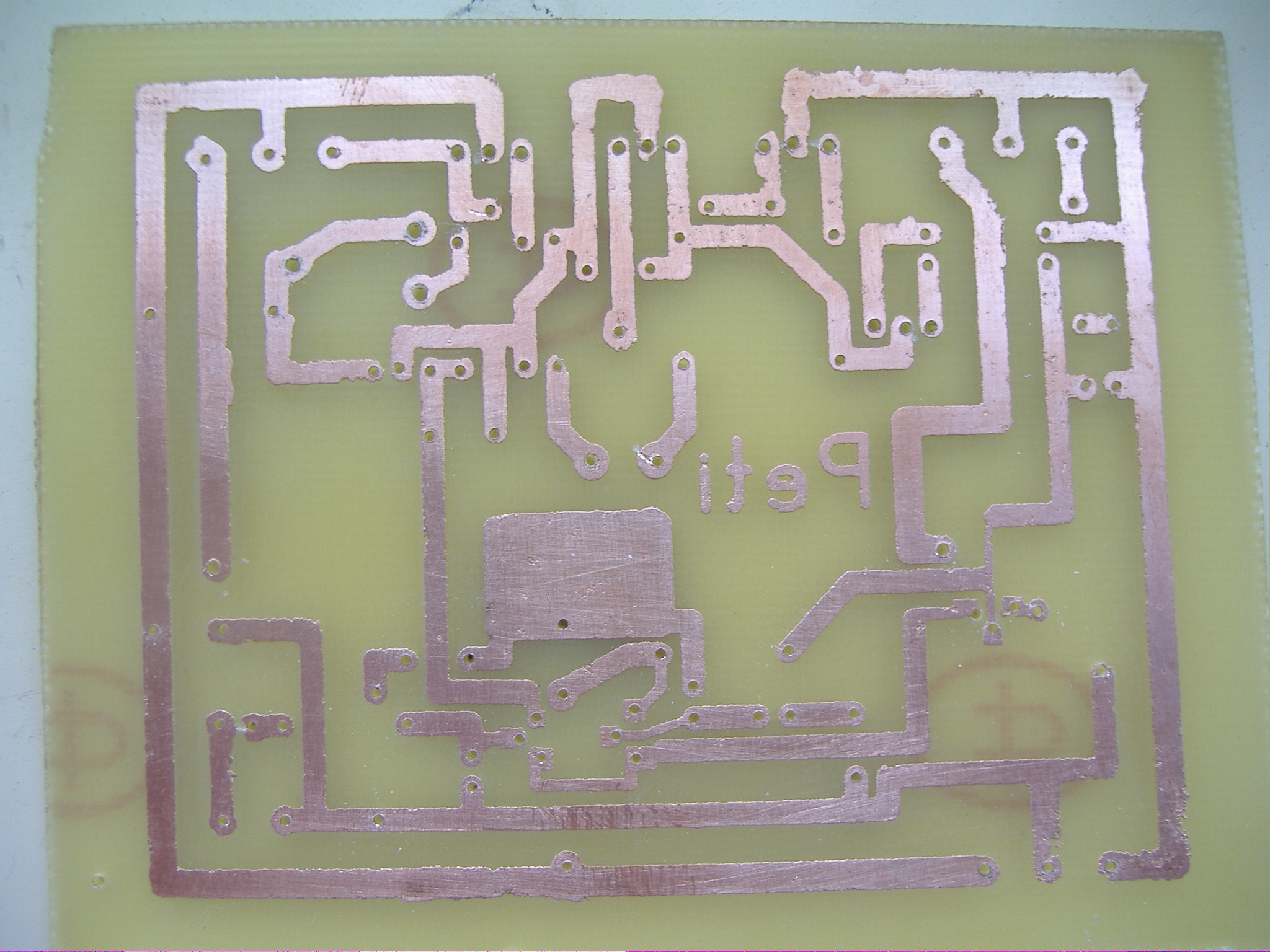 Itt van egy vasalt NYÁK... sok kísérletezés volt előtte... A vasalót maxra tekertem, rátettem egy papírlapon kersztül a nyákra, és eleinte csak úgy hagytam, egy picit, aztán erősen nyomva ide oda forgattam, dörzsöltem, stb kb. 2-3 percig, aztán amit eddig nem így csináltam, egyből a víz alá nyomtam, (még sercegett a forróságtól, a nyák is kicsit megvetemedett) és elkezdtem ledörzsölgetni, aztán a végén, egy finomabb sörtéjű körömkefével megsimogattam... És kész is! Van egykét hibás rész rajta, azt kijavítottam, lehet is látni... Sajnos nem lett a legjobb... Jaah és sima A4-es lapra nyomtattam! Hali Peti