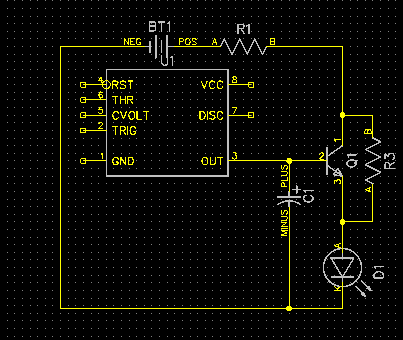 Csak szemléltetésképpen vágtam oda az 555-öt, hogy látszódjon, annak a kimenete vezérli a tranyót.