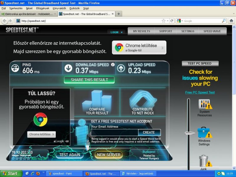 Sziasztok! Remélem, még nem lóg ki túlzottan a témából... 5.5/0.5 Mbit-es netkapcsolatom van elvileg, mégis a képen látható az eredmény. Router, modem hibája kilőve, a számítógépé szintén. Ilyenkor mi a teendő? Szerintem ez már a szolgáltató hibája...
