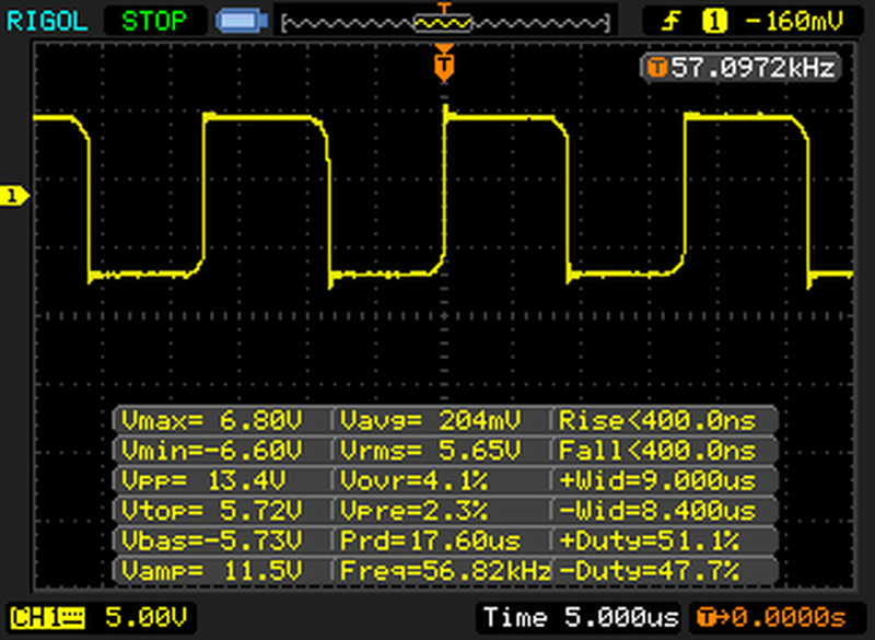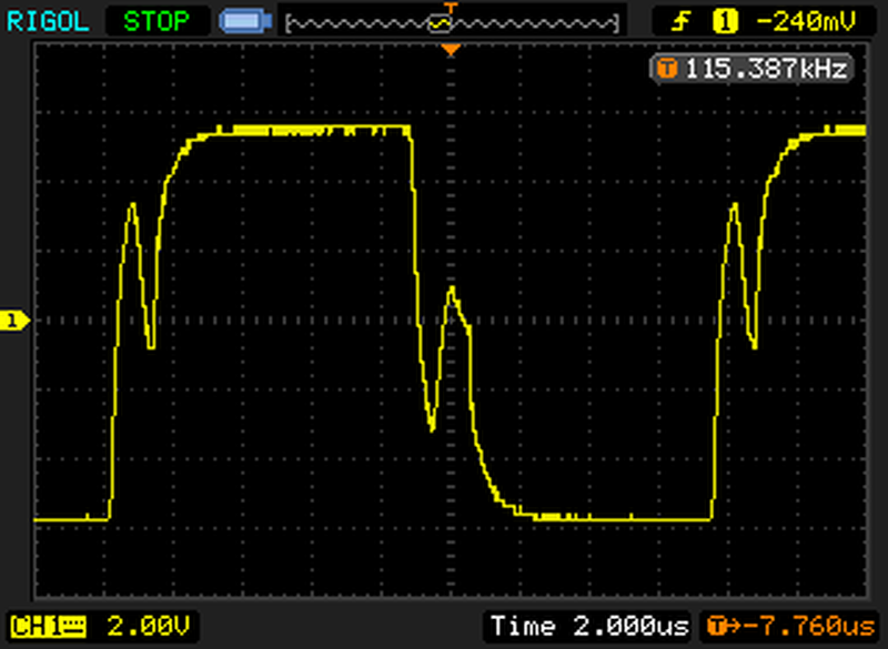 Nem gáz, gondolom áttetted a szkóp GND-jét a felső FET source lábára. Csak egyszerre nem lehet így megmérni normálisan a kettőt.