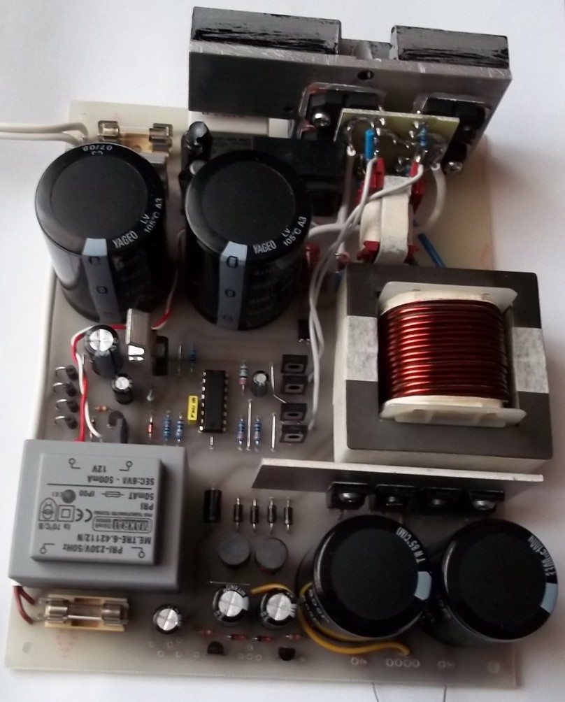 A nagy teljesítményt azért nem tudom, hogy mennyi, mert akkor nem volt még graetz a szekunderen, hanem csak rátettem az izzókat. Így meg ugye nem tudtam feszültséget, és áramot mérni. Különben 7db 21W-os autó féklámpa izzó volt. Aztán rátettem a graetzet, és sorba tettem a trafó 2 szekunderét, nem párhuzamosan mint az elején, ésakkor volt 11.8V üresben, terhelve meg 6.76V Tehát ez a trafó valószínű nem félhídra lett meg tekerve gyárilag. Holnap csinálok bele egy hirtelen összerakott gyilkos trafót, és mehet a teszt.