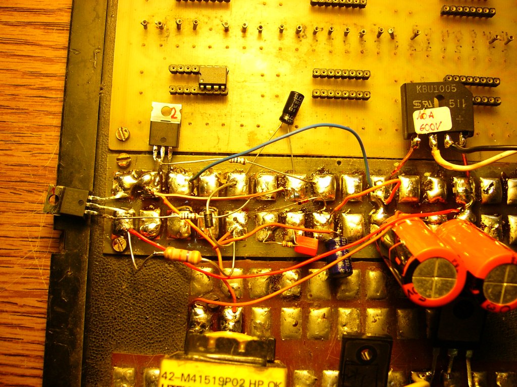 Nem akartam 12V-osat bele tenni, mert azt valószínű sűrűn eléri a "segéd"táp, és nem akarom fölöslegesen fűteni a zenert. Az ic is bírja a 15V-ot simán, úgyhogy sima kis teljesítményű 15V-osat tettem bele.