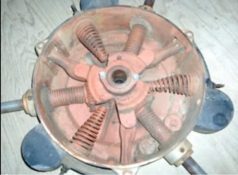 Vagy a rugónak csinált helyet vagy a kivágott darabot hegesztette fel a tengely végére. Esetleg mindkettő. Mindenesetre elgondolkodtató. Bonyolultabbnak gondoltam a lapátszögállítást.