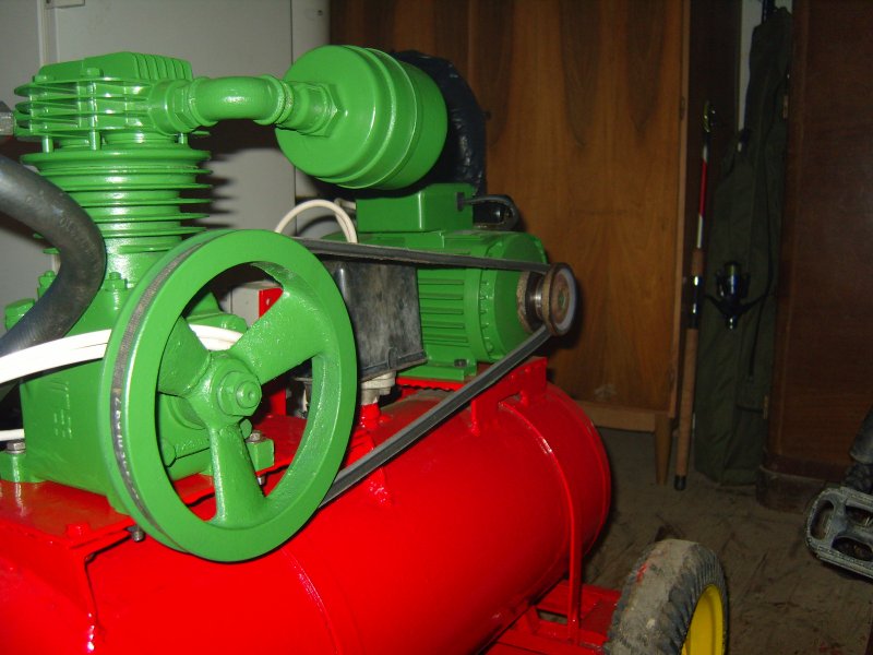 Nem tudom mit, és mekkora tételben akar homok-szórással megoldani....lehet, hogy olyan meló, ami sok kicsi, és meg tud állni közben...a cégnél ezer számra voltak kissebb cuccok...ott nem azért kellett megállni, mert levegő nem lett volna, hanem azért, mert jött a kaja-szünet...Ha sok kis cucchoz kell, akkor nem feltétlen baj...ha meg annyira komoly a meló, hogy kinövi ezeket a verziókat, akkor beruház 380-ra...vagy egy 2.2 KW-os 220v-os motorra...Az egyik ismerősömnek 1.1 KW-os motor is elviszi a kompresszorját, a másiknak csak 1.8 KW viszi el. Mindegyik egy hengeres, ha jól emlékszek....Illetve van egy harmadik ismerősöm, ott egy 3 fázisú 920-as fordulatú öntöttvas-házas motor van gyárilag egy 2 hengeres kompresszoron...teljesítményéhez képest nagy a motor magassága, abban vastag a forgórész...ez is lényeges....Minél nagyobb a forgórész-vasmag átmérője, annál nagyobb a motor erőkarja, annál nehezebb lefogni....csak hát oylan motort már nem nagyon lehet összeszedni, ami a teljesítményéhez képest nagy átmérőjű forgórésszel rendelkezik, mert hát a gyártóknak érdekük, hogy minél kevesebb anyag elég legyen hozzá...Szerintem ha a lukas verziót egy 2.2 KW-os üzemi kondisra tervezett motorral összehozná úgy, hogy az indításkor rajt legyen még dupla kapacitás, ami felpörgés után lekapcsol,akkor nem lenne indítási problémája...csak mikor megjön a villanyszámla...de ha a dugattyúk keresztmerszete, és a löket-hossz nem túl nagy, akkor lehet, hogy kissebb motorral is sikerül