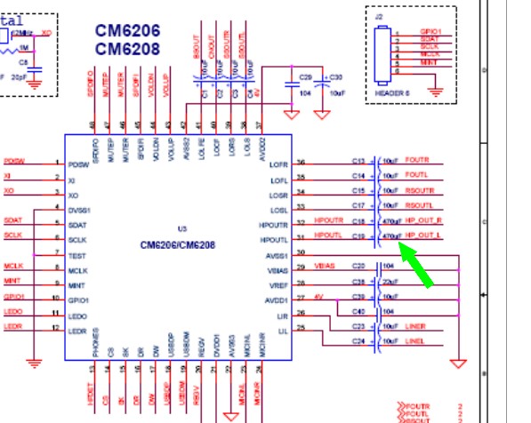 Rendeltem egy hangkártyát (fotó) amiben egy szerintem egy CM6206-os chip lakozik. A gondom vele, hogy nem kielégítő a mély-átvitel fejhallgatóval. A fotón látható kimenetek vannak csak rajta, viszont az IC adatlapjából kiollózott táblázaton van fejhallgató kimenete is ami esetemben nincs kivezetve. A kérdésem, hogy a kapcs. rajz részletben látható megnyilazott kimenet 470µF-os kicsatoló ELKO-ja biztosítja-e a relative kis impedanciás fejhallgató számára megfelelő mélyátvitelt? Nekem csak "front out" van és az ottani kondik 10µF-osak a rajz szerint. Ez megmagyarázná számomra a fenti jelenséget. Jól gondolkodom?
