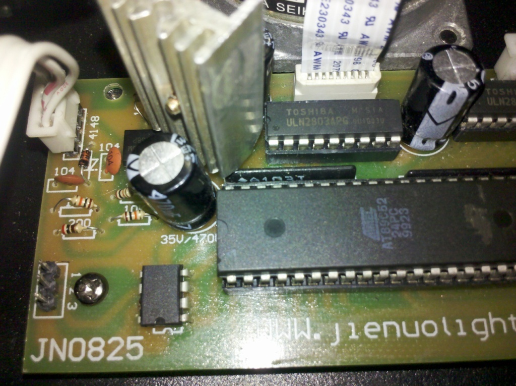 Van egy hibás Mini ledes robot lámpám. Mellékletben kép, videó, hogy melyik fényről is van szó. A hiba: A ledeket teljesen rendszertelenül villogtatja. Az X irányú motor masszívan meg van fogva meg sem moccan, az Y irányú motor csak rángat. Teszek fel képet a vezérlő elektronikáról. Egy AT89C52 a lelke. Próbáltam kiolvasni a programot belőle, hogy áttöltsem egy új IC-be. Nem engedélyezett az olvasása szerintem valamilyen olvasás védelemmel van ellátva. Esetleg tud-e valaki valamilyen ötletet, mi lehet a megoldás? Cseréltem benne ULN 2803-akat, oszcillátort, de nem változtatott a működésen. Video a lámpáról: http://www.youtube.com/watch?v=F_eOC0ByRxE&feature=related
