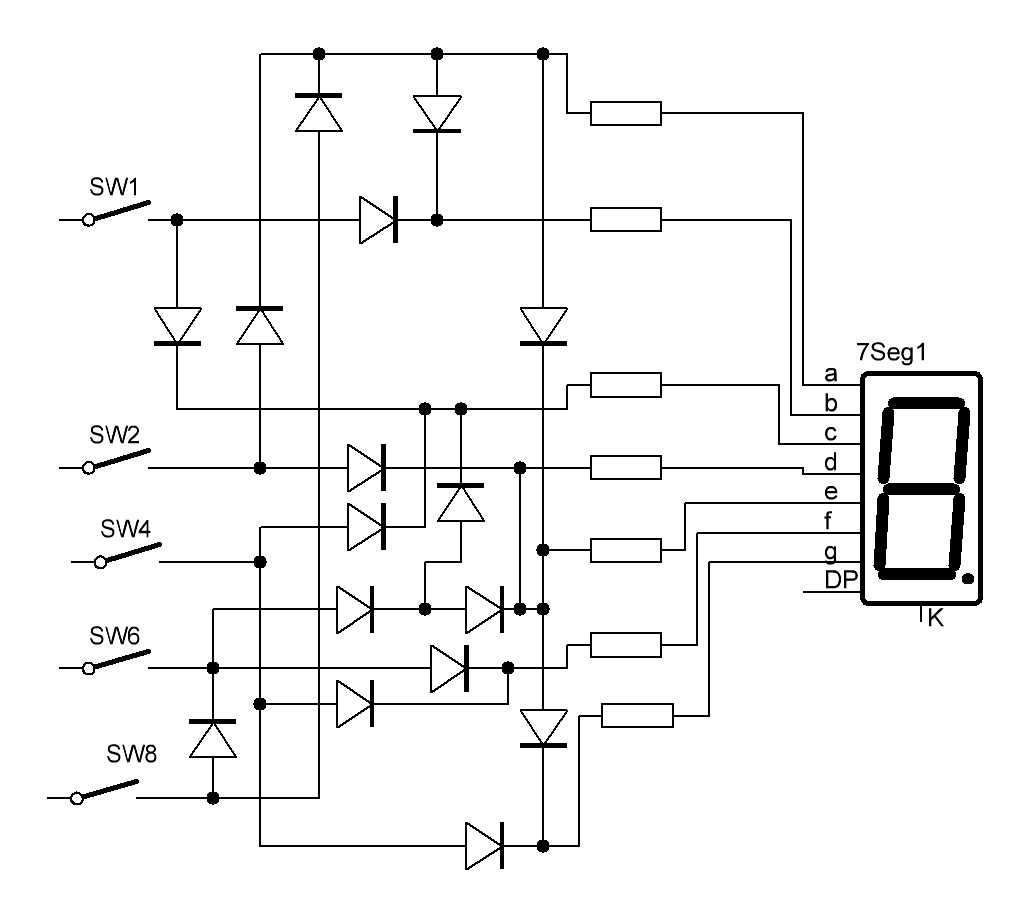 Mellékeltem az IC mentes megoldás alap kapcsolását. SW1 hatására 1 jelenik meg a kijelzőn SW2=2, SW4=4, SW6=6, SW8=8. Én ebben a formában sosem építettem meg, de így átnézve jónak tűnik. Másik megoldás az IC-s: Fogsz egy 4543 IC-t és az igazság táblázata alapján adsz magas vagy alacsony szintet az 2-3-4-5 lábaknak. Pl.: 0001 - 1; 0010 - 2; 0100 - 4 stb. A lábkiosztásokra figyelj oda! Mert 2-3-4-5 az C-B-D-A viszont az igazság tábla DCBA formában adja meg a logikai szinteket. Azért ezt az IC-t mondom mert ennek a 6-os lábon megtudod mondani, hogy közös anódos vagy közös katódos kijelzőt használsz. Remélem tudtam segíteni! Én sem vagyok jártas páka forgató. Azt azért elárulhatnád, hogy milyen kapcsolásba kell.
