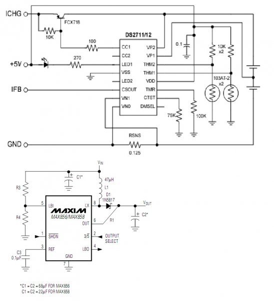 Egy hordozható eszköz tápelláását szeretném megoldani, amiben 2 db NiMh akku van. Az akkuk feszültsége dc-dc konverteren keresztül táplálná az áramkört. Ha az akkuk lemerülnek külső stabil 5V csatlakoztatásával és az eszközön belüli NiMh akkutöltő IC töltené az akkukat. A mellékletben lévő áramköröket kell használnom. A problémám az, hogy a dc-dc konverter tekercse is és az akkutöltő töltő, mérő vezetékei is a cellákra csatlakozik. A kérdésem pedig, hogy a két áramkör nem fogja egymást zavarni működés közben? Hogyan lehet őket szétválasztani? A feladatomat bonyolítja, hogy egy napelem (1,5V , esetleg 3V) is kell a rendszerhez ami a dc-dc-n és az akkutöltőn keresztül tölti a cellákat. Remélem eltaláltam a topicot. A segítségeteket kérem, hogyan valósítsam meg azt az áramkört?