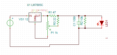 A 7805 -ös kapcsolásba beraktam egy potmétert, hogy tudjam szabályozni az áramot, TINA -ban leszimuláltam és ott működött, 112mA-248mA -ig lehetett szabályozni. Neked mi a véleményed róla?