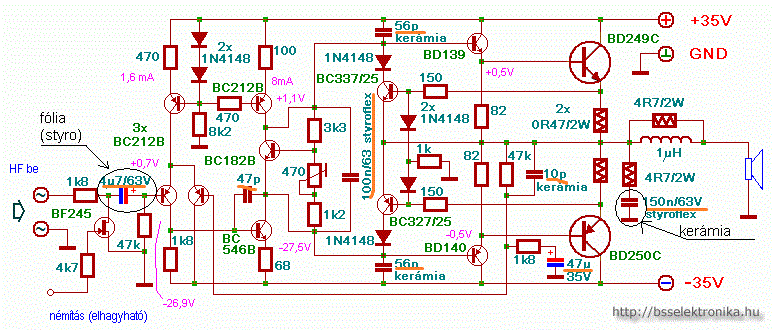 Ez ugye a Videoton végfok Hát kicseréltem mindent kivéve egy meghajtó tranzisztort na meg a Te párt BD párra cseréltem ( vég tranyó ) Még majd a másik fele van ha eljutok megint a boltba ,de végül is ahogy mondtátok a meghajtok meg a vég tranzisztorok szálltak el. { Majd holnap terhelem meg igazán , este már nem akarom mert megver a szomszéd vagy puskával fog kergetni }