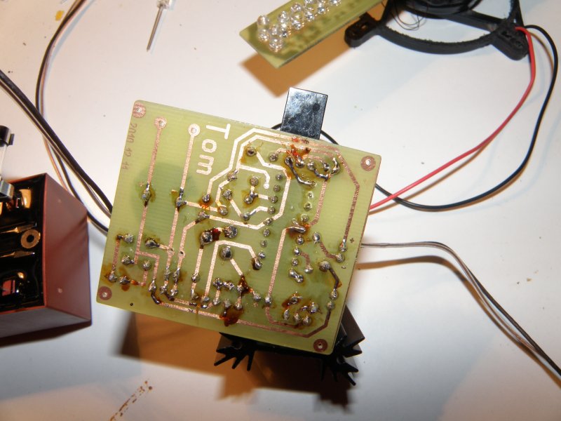 A pic nincs fordítva, fel is van programozva a módosított verzióval. Leköttem a LM2941-et, de forgott a propeller lassan. És itt a kép:
