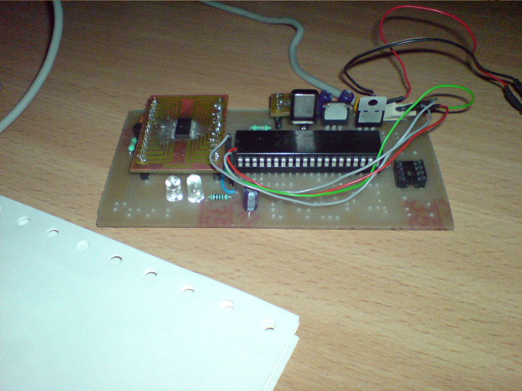 Látom még él a topic, szóval én is megosztom az egyik művemet (kb egy éve készült és azt hiszem, hogy ez volt az első próbálkozásom a sok lengő forrasztásos bohóckodás után). Gyakorlatilag a propeller demoboard-jának egy részlete lett megépítve némi módosítással. Ezek a módosítások a következők: cserélhető kvarc, cserélhető eprom, cserélhető ft232rl Mivel a képen látható doboz volt csak itthon (kb 13x7 centi ha jól emlékszem) és muszáj volt dobozolni (mivel öcsém a szakdolgozatát ezen/erről csinálta), így az elrendezés nem éppen egy demoboard-ra hasonlít (de minden nem lehet tökéletes ). Lényegében a szakdolgozatban egy digit. hőmérő lett megvalósítva (csak pc-n kiolvasható értkékekkel) és usb-n keresztül egy visual c#-ban írt progival lehet az értékeket kiolvasni, amit a propellerben levő progi (ha jól emlékszem) 1 óránként megmér és eltárol egy sd kártyán (csak az sd modul még a képek készítésekor nem volt meg).