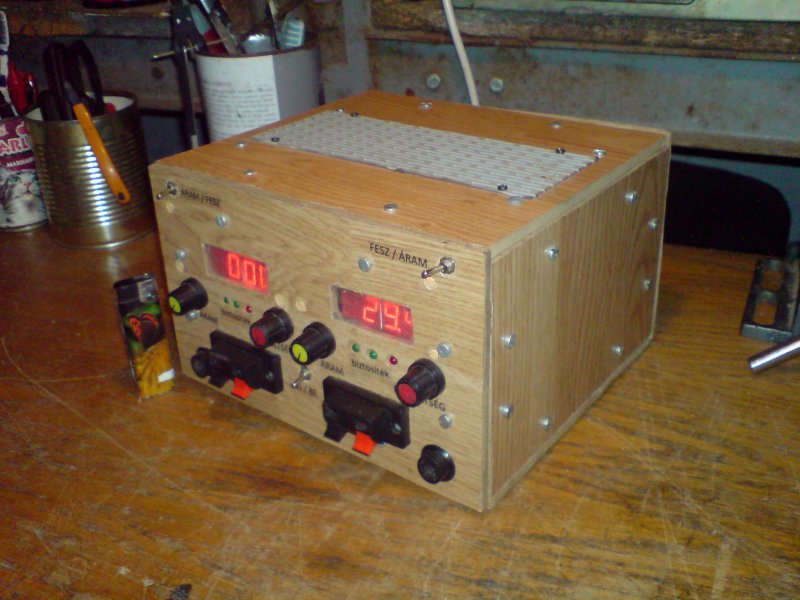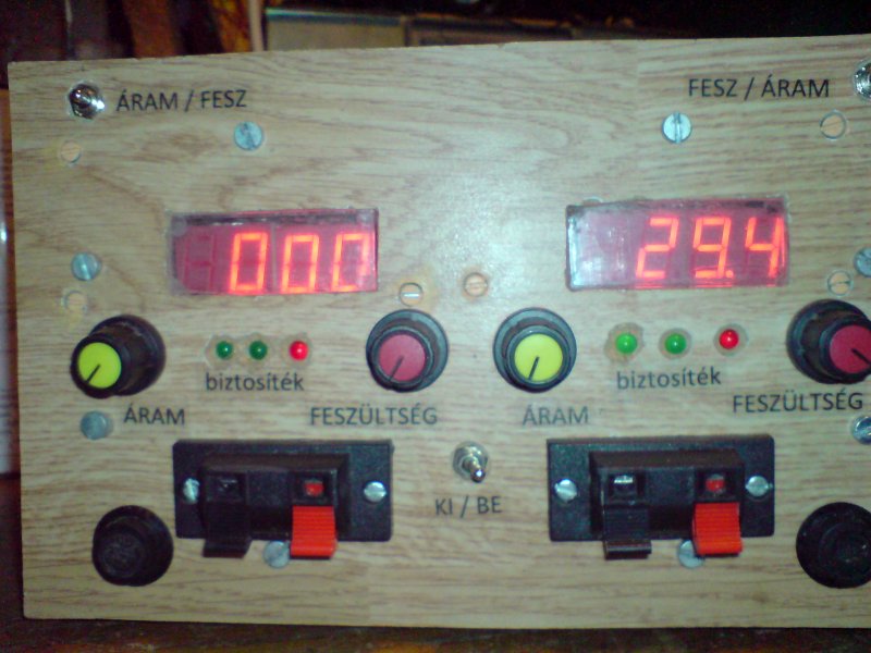 Kb 1éve csináltam ezt a labortápegységet, de nem lett befejezve-ezidáig. 2x0-30V és 2Amper, természetesen sorba köthető. Pár hiányossága van azért, többnyire hely hiány miatt (pl. a kimeneten nem lehet lekapcsolni ), de azon kívül jól üzemel. A hangfalcsati direkt került rá, jobb szeretem használni, mint a banán aljzatot. Gondoltam bemutatom: Üdv.:Gergő