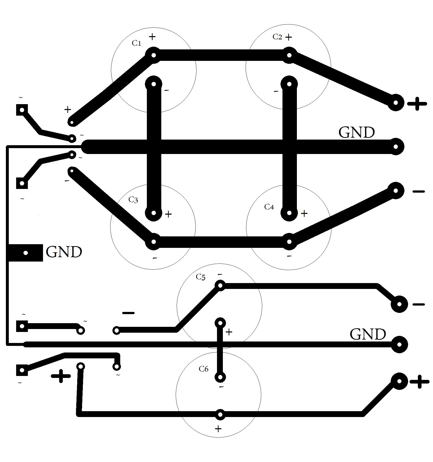 a primer tekercs egyenirányítva van a graetz híddal, + 4 db 10ezer mikrós puffer kondi (ezt ugye így mondják?)