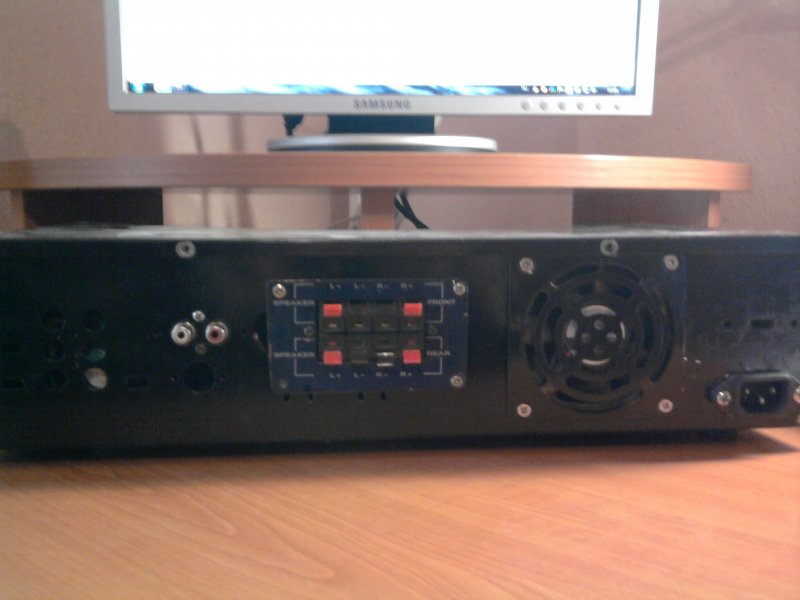 Csatlakoznék a témához saját művemmel ami jelen esetben egy erősítő.TDA8571J ic-n alapszik, elméletileg 4x40W-ot tud de ha nem is attól függetlenül meg vagyok vele elégedve.Nagyon szépen és tisztán szól, elsőre sikerült éleszteni.Az ic-t egy sikertelen lopás alkalmával tönkretett CD-s autórádióból operáltam ki.Tápként egy 300W-os ATX tápot használok (pc táp akkutöltő mószerrel tuningolva).A képeken látható 2db ventillátort egy DVD lejátszó tápja működteti.Az előerősítőként alkalmazott kütyü egy icipici gyári autós erősítő pontos mása amit az általam kézzel rajzolt nyákra építettem meg.A kivezérlésjelzőt egy AIWA deckből termeltem ki. Ezek után csináltam egy gyönyörű dobozt majd beleépítettem az egész művet.Nem a legszebb de működik és ez a lényeg számomra. Egy aprócska gond van vele mégpedig, hogy kikapcsoláskor pukkan.Akinek van ötlete mi lehet a gond az kérem ossza meg velem. De lássuk a berendezést képekben!