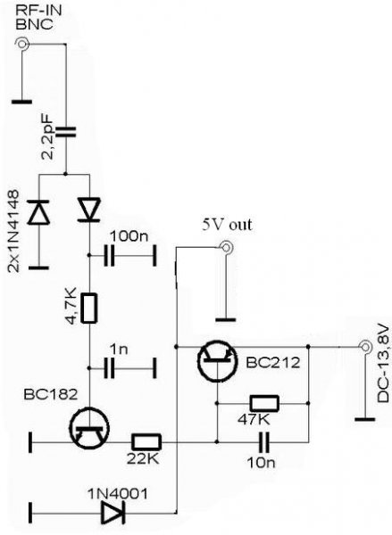 Ha ezek után se megy a kis áramkör akkor még javaslom a BC182 bázisa és a GND közé egy 10K ellenállást betenni. RF jel nélkül ezáltal határozottan lezárva marad a tranyó.
