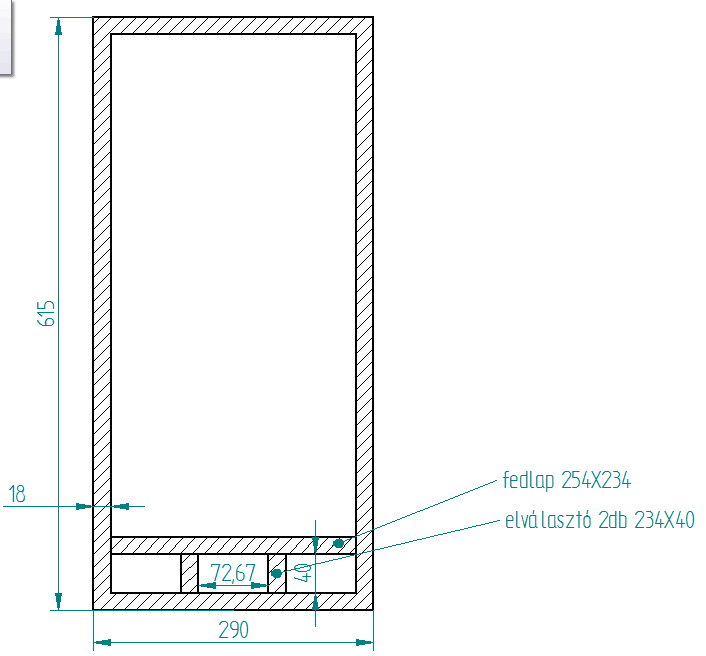 doboz: 615X290X405 külső méretek. 18 mm-es anyagot használj. Csillapításnak vatelnit , lazán nem szorosan a fal mellé , kell bele jó sok de nem kell kitömni ,mint egy zárt dobozt.