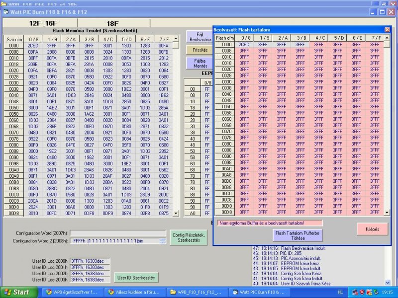 Azt meg tudod tenni, hogy kiolvasod a PIC-et és felteszed a kiolvasott tartalom képét? Az a baj, hogy nem látok eltérést más PIC-ek memória olvasása között, ezért nem értem a dolgot. Próbáld lassítani a sebességet, hátha az a baj! Neked milyen sebességen megy most?