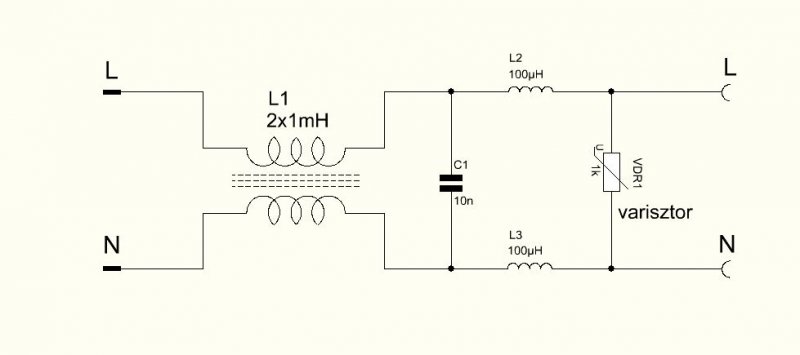 - Másik eshetőség, ha azt szeretné az ember, hogy kisfeszültségen (nyitófesz alatt) még ne follyon áram. (földhurok védelem) De az meg egy zavarszűrőben minek lenne.