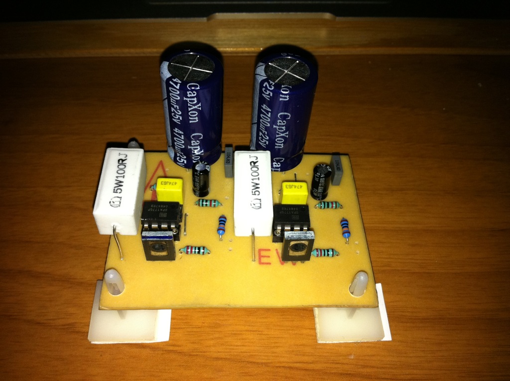 Sziasztok, ma lettem teljesen kész az erőlködőmmel, ez egy Quad 405-ös erősítő, át spékelve 200W-osá (úrban féle), +- 60V-ról járatom, két 350W-os trafóról, két darab 15 A-es Gratz hídról és 2 darab 20000 µF/90V-os kondi az alimentálás. Kapott még két darab reflex RX 500-as védelmet is, aminek külön csináltam egy stabilizátor egységet ami pont 37V-ot stabilizál a védelmeknek. Az erőlködő tökéletesen működik 8 ohmról, de ha le terhelem 4,5 ohmra akkor nagyobb hangerőnél a zene közbe be produkál ilyen kis furcsa koppanás szerű recsegéseket. Szerintetek mivel lehet a probléma. Ez az erősítő kell hogy menjen 4 ohmról is az Urbán leírása szerint.