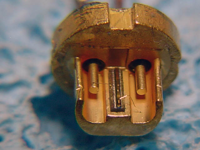 A képen jól látható a LOC dióda jellegzetessége,a hosszúkás lézercsip,vagy die.