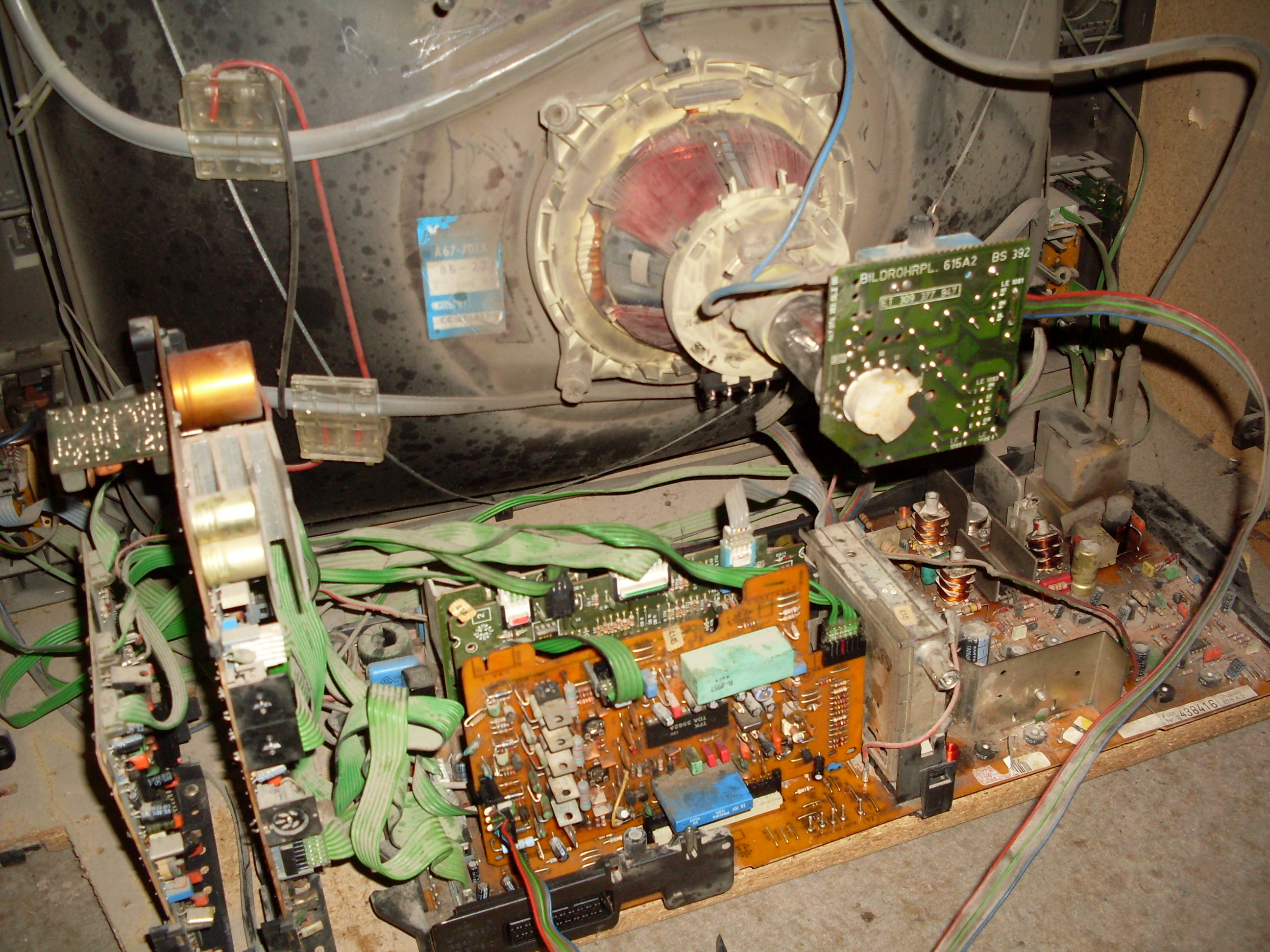 Nekiálltam a múltkor a Te segítségeddel annak az Akai tv-nek.Talán emlékszel még rá.Nos megjött minden hozzá.Kicseréltem a tápkörben a kondikat,meg a sorkimenőnél a megszakadt ellenállást,és a szakadt diódát,meg a függőeges meghajtó ic-nél a 12V-os zénert is.Bekapcsoltam,és láss csodát,tökéletesen megy a tv.Jó a kép is.Több mint 1 órát ment gond nélkül.Az már csak hab a tortán,hogy zener csak 5W-os volt,ezért csak a forrasztási oldalra tudtam felhegeszteni,és az ellenállás is brutál 3W-os porcelán. A működésről tettem fel képet. (A képeket telefonnal csináltam,azért olyan-amilyen....)Köszönöm neked a segítséget!!